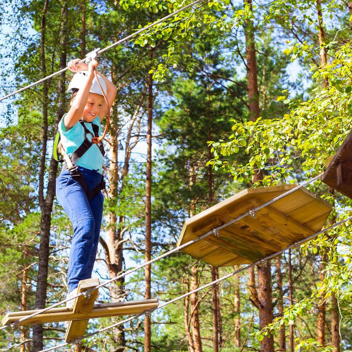 Parc accrobranche en pleine forêt proposant plusieurs parcours dans les arbres pour tous les niveaux. Activité sportive et ludique pour petits et grands.